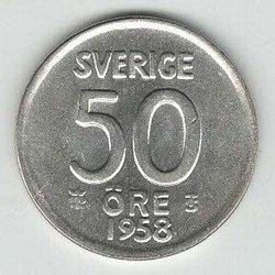 1. Gustaf Vl Adolf, Silbermünze, Wert 50 Öre. Jahr 1958.
