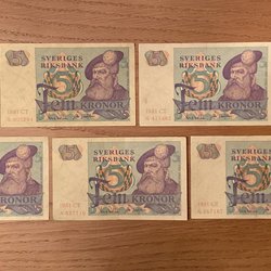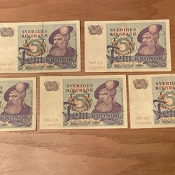För att göra det enklare att hitta rätt mynt och sedlar i vårt breda begagnatutbud finns det olika underkategorier och sorteringsverktyg som hjälper till att få fram de alternativ som är intressanta just för dig. I den här kategorin hittar du till exempel svenska sedlar från 1874 och framåt och du kan sedan välja om de ska säljas i nyskick eller begagnade i menyn till vänster på webbsidan. Annonserna kommer från både privatpersoner och företag och utbudet uppdateras dagligen med nya spännande sedlar.