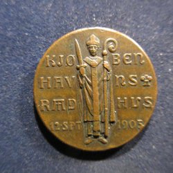 ÄLDRE Medalj Kjöbenhavns Hus 1905 (Durchmesser 28 mm...