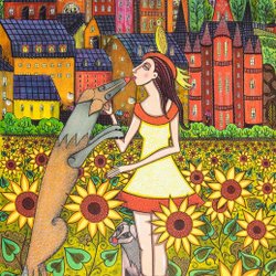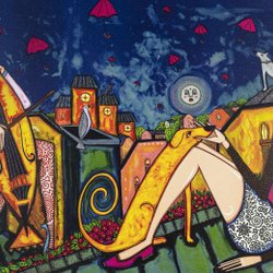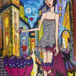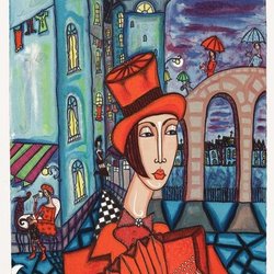 Angelica Wiik - Unter den Dächern - Lithografie mit Glitzer