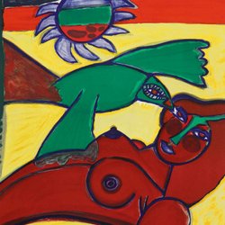 Corneille - Nu rouge à l'oiseau vert - Lithographie