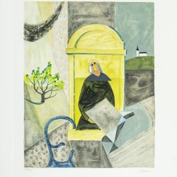 Mädchen im Fenster - Halmstad-Gruppe 50 Jahre - Stellan Mörner - Lithographie