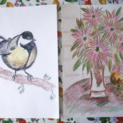 - Teckningar i olika tekniker, som blyerts, kol, tusch eller pastell