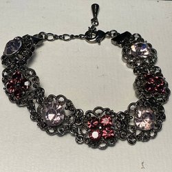 Armband mit rosa und lila Steinen auf dunklem Metall (5553)