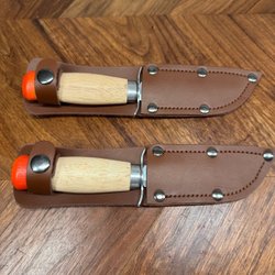 Zwei Pfadfindermesser mit Lederschutz