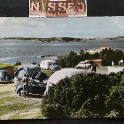 Sågstrands Camping mit Zelt und alten Autos