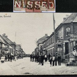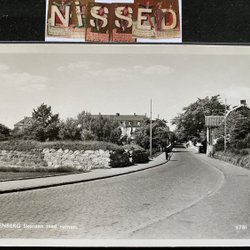 Falkenberg Straße mit Bosättningsaffär Lampen