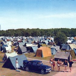 Halmstad. Östra Stranden. Zeltstadt mit feinem Volvo. A6