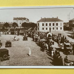 Kristianstad Bahnhof mit alten Autos
