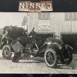 Echte Fotopostkarte. Verunglücktes Auto vor Molkoms Bilverkstad Bröderna Svensson