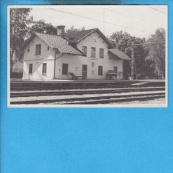 BRODDBO-Bahnhof mit Verkaufsautomat, Fotopostkarte aus den 1940er Jahren (Sala)