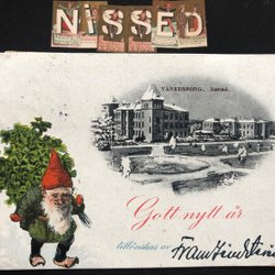 Kleine semitopografische Postkarte Tomte isst Grütze Göteborg