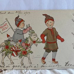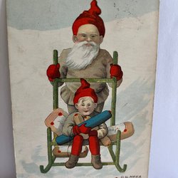 Frohe Weihnachten Signiert LL Hahr Tomtar Med Släde Pg 190?