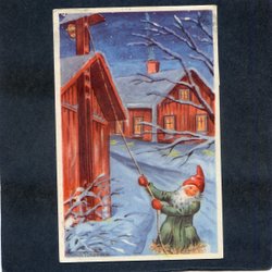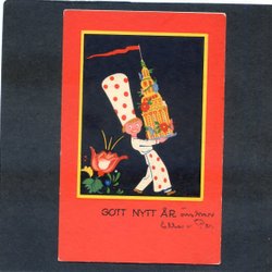 3 kleinformatige Weihnachts-/Neujahrskarten in einem etwas seltsamen Stil mit dem Schild I-L SÖDERSTRÖM aus den 1940er Jahren