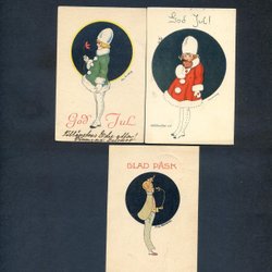 2 Weihnachts- und 1 Muttertagskarte signiert BO CARLBRING 1920er Jahre, davon ein kleines Format