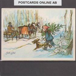 7 kleinformatige Weihnachts-/Neujahrskarten, signiert von CURT NYSTRÖM, Winterumgebungen der 1940er-50er Jahre