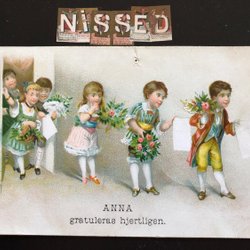 Herzlichen Glückwunsch, festlich gekleidete Herren mit Hüten, mit Bierflaschen, einem Kaninchen usw.