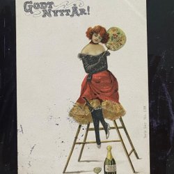 Männerbesuch im „Boudoir“ einer schönen Dame. Bezaubernde Karte aus der Zeit um 1905