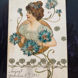 Schöne Karte im Jugendstil Mädchen mit Kornblume