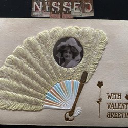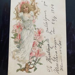 Schöne Karte mit Mädchen im Jugendstil mit Pfeilen. enthält kleinen Umschlag mit Brief