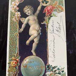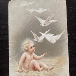 Kartonkarte Engel und Tauben 1890er Jahre