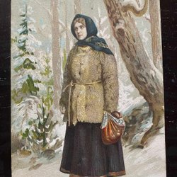 Kartonkarte Frau mit Krawatte 1890er Jahre