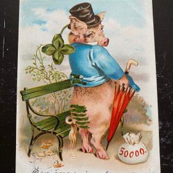Schweine fahren Wagen mit Goldmünzen Relief