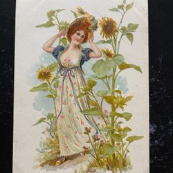 Schöne Damen- und Sonnenblumen-Warenrabattmarke auf der Rückseite