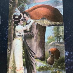 Romantisch zu zweit vor Pilzen