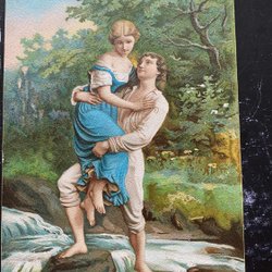 Kartonkarte Mann trägt Frau über Fluss