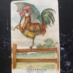 Französische Handshake-Karte mit Hahn in schwedischer Sprache aus Paris 1895