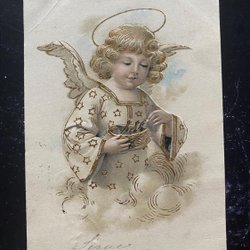 2 Engel und Tanne Gold und Relief. gestempelt Vesterhaninge 1903