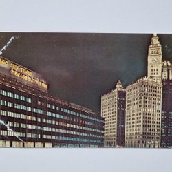 Postkarte WRIGLEY-GEBÄUDE IN DER NACHT