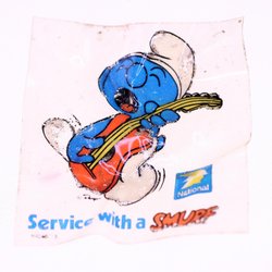 Schlümpfe Plastikabzeichen-'Service with a Smurf' vintage National badge-circa UK 1970