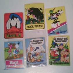 Stickers är tunna bitar av papper eller plast som har en självhäftande baksida. De används för att dekorera eller märka olika objekt och ytor. Oavsett om det är en rolig karaktär, en inspirerande text eller ett färgstarkt mönster, kan stickers ge dina saker en personlig prägel. Många använder dem även för att marknadsföra sina företag eller stödja en god sak. Utbudet av stickers på Tradera är fullt av olika typer och teman. Här är några exempel: