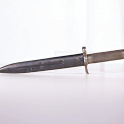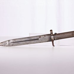 En bajonett är del krigshistoria, men de första bajonetterna användes faktiskt vid jakt på 1500-talet. Då blev musketörerna så pass lätta att bära på att man kunde använda dem i jakten av stora djur. För även om geväret var lätt, sköt det endast en kula i taget och det tog tid att ladda om. Därför trädde man i en kniv i pipan för att skydda sig mot angrepp från det skadade djuret under tiden man laddade. Senare monterades bajonetterna runt pipan istället för att man skulle kunna skjuta med den på. De användes även till närkamp under krig när fienden kom för nära för att man skulle hinna ladda om. Soldater tränades i att använda bajonett. Andra världskriget förde med sig en helt annan typ av krigföring än tidigare och även om bajonetten användes även under detta krig var det inte i samma utsträckning som under tidigare århundraden.