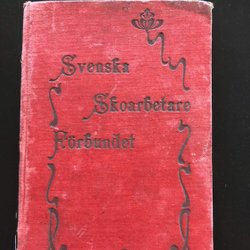 Heft mit Stempeln und Etiketten für Svenska Skoarbetare förbundet ungewöhnlich
