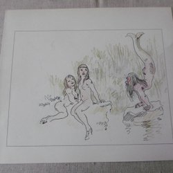 Malerei/Bild/Druck, Robert Högfeldt, Die Giraffenbar 26,5x22,5 cm
