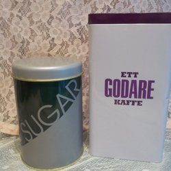 2 Blechdosen. Löfbergs Lila Kaffee und Zucker.