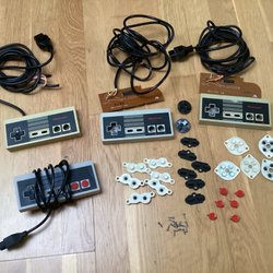 Förutom den klassiska spelkonsolen från Nintendo går det även att hitta reparationskit, massor av spel och många av spelkonsolens tillbehör.