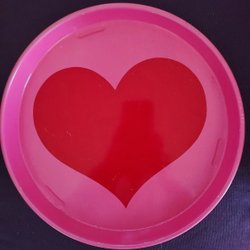 Tablett Rött HJÄRTA Rund Rosa Plåt Durchmesser 28 cm/30,5 cm Kanten Höjd 3 cm