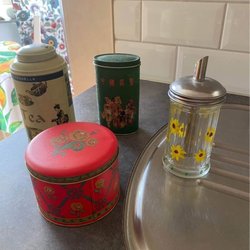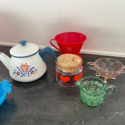 Verschiedene Küchenutensilien. Fyndlåda, neuer und alter.