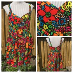 WAREHOUSE Vintage Mehrfarbiges Bandeaukleid Größe S