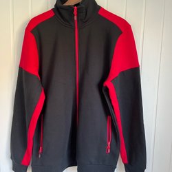 Printer PRIME Zweifarbiger Pullover in Schwarz/Rot mit kurzem Reißverschluss - neu, unbenutzt, Gr. L