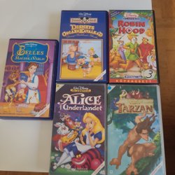 Disney Klassiker VHS - Belle, Robin Hood, Alice i Underlandet, Tarzan, Disneys