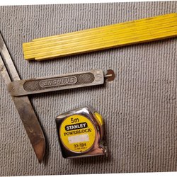 Werkzeuge: Zollstock, Winkelmesser, Maßband