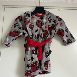 Grauer, roter Morgenmantel, Größe 86/92