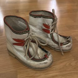 Vintage gefütterte Schnabelstiefel aus geschnitztem Leder Gr. 26