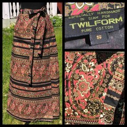 Vintage langer Rock Maxirock braun gemustert Adelsten Größe S 34-36 Tag links