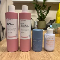 By Veira Repair Shampoo, Conditioner, Björn Axén Serum, Space NK Body Lotion